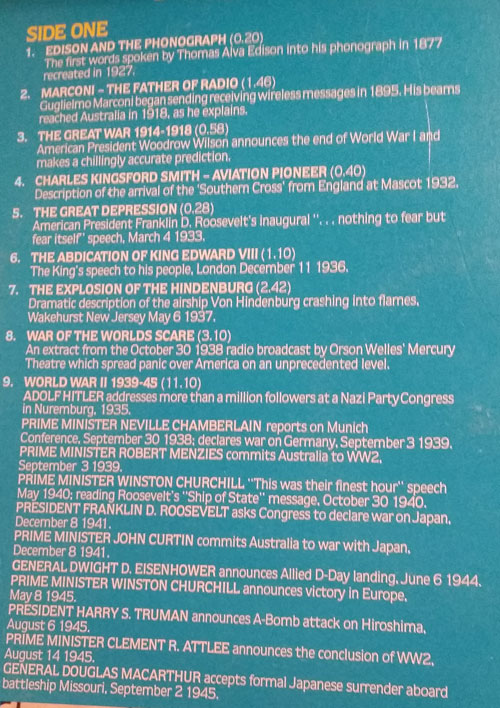 This is a different kind of release. What you will hear in these recordings are speeches and audio recordings from some pretty significant moments in 20th Century History.